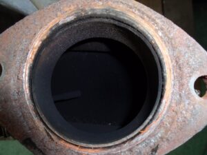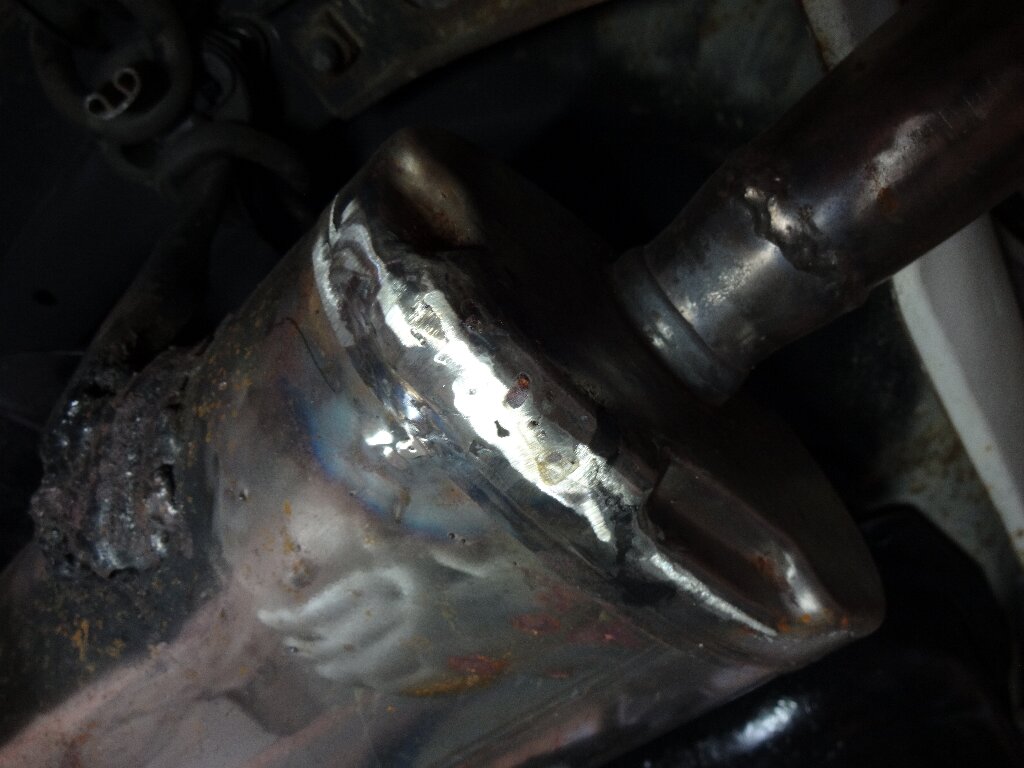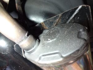 また、マフラー前の穴を塞いだ部分にもピンホールあったのですが、コチラも排圧を感じるほどではありませんでした。黒いのは多少煤けてたので、ソレを隠す為に先日付け直した際に急遽耐熱ブラックで塗ったまでです。
