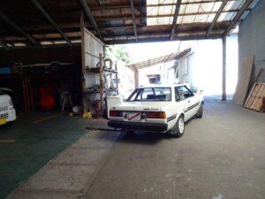 どうやら車検整備終わってからコチラに戻して来たみたいです。次はナンバー付いてから再会かな?と思ってたのに拍子抜け。そーいや工場の方は置き場所が無くてスペースがカツカツって言ってたな。。。