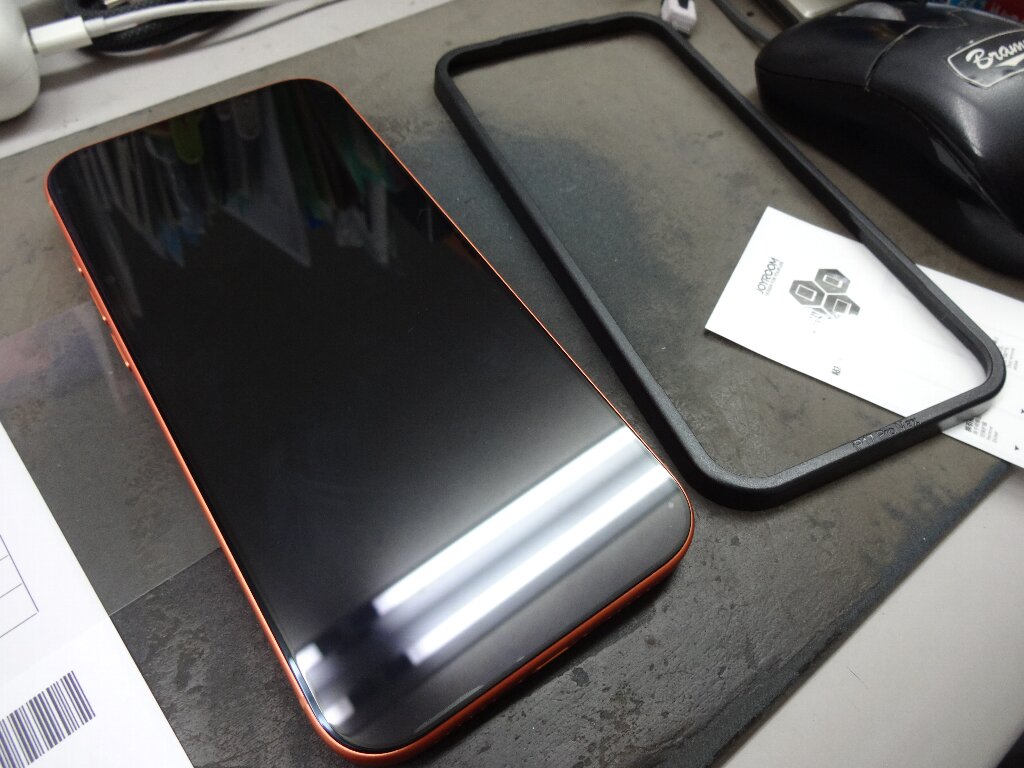 同じくガラスフィルムも貼り付け。貼り付け時の位置決めに使う型枠が付属して来たので、気泡レスのガラスも相まって簡単に貼れました。
