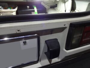 バックカメラを取り付けるのですが、念の為、ナンバーと接する面に薄手の両面テープで貼り付けときました。