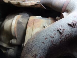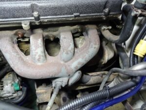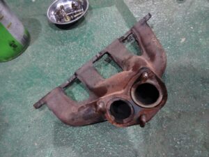 という訳でエキマニを外そうと思ったのですが、フロントパイプとの継ぎ目が外れるのか?かなり厄介そうだったのですが、