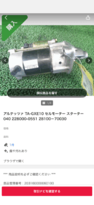 ヤフオク漁ると適合しそうなセルあったので落札しておきました。アルテッツァに1G-FE積んだのあったのね、、、しかもVVT-とは。i