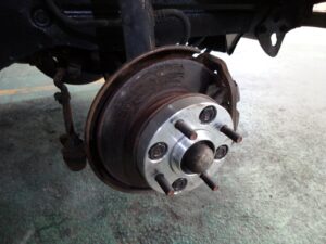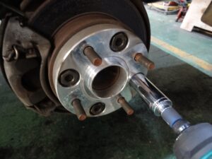 という訳で、ワイドトレッドスペーサーはリアに戻します。外す時ナットが1個緩んでたので、左右とも増し締めしておきました。ちなみに左側も1個だけ緩んでました。。。