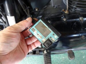 そーいやこういう余計なモノも取り外さなければ、、、ちなみレッドバロンでかつてバッテリー交換すると無償で取り付けてくれたバッテリーチェッカーだそうです。