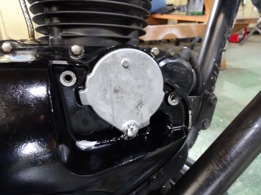 エンジン止めて落ち着いてから、車体を水平に起こして小窓でレベルチェックします。しかしイキナリ汚いな・・・次のオイル交換は早めの指示しとかなきゃ。