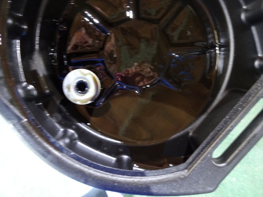 で、結局抜けたオイルはこの量です。フィルターのところで拭き取ったの合わせて多く見積もっても300ccぐらい。オイル交換容量がフィルター交換時2Lってことを考えると少な過ぎる、、、