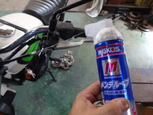 そして少し重たかったクラッチワイヤーですが、ワイヤーインジェクター使おうと思ったら上手く行かず、結局アウターとの隙間にノズル突っ込んで直接吹き入れました。