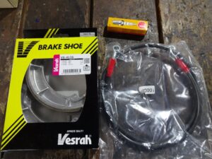 昨夕のブレーキホースに続いてブレーキシューとプラグが届きました。