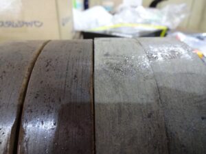 ドラムブレーキの場合、この程度の減りでもアレだけ調整ナット回す必要があるんだから、かなりの減ってる事になるみたいです。