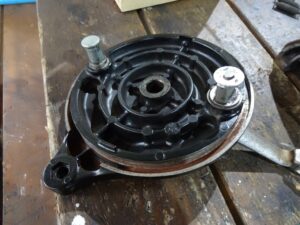 清掃してからブレーキシューと当たる部分にグリスを塗っておきます。