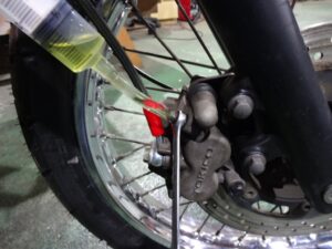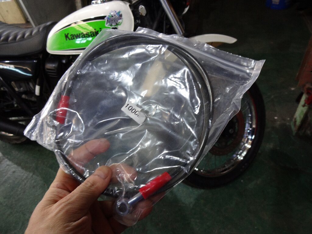 今日はまず250TRのブレーキホースをメッシュホースに交換します。