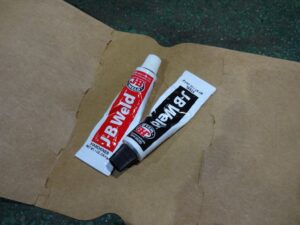 さすがのJBウェルドもすぐには硬化しないので、明日までこのまま放置となります。