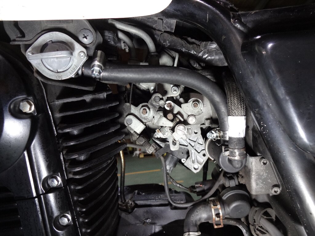 メインハーネスの配線の取り回し考えるのにガソリンホース抜こうと思ったら割れちゃいました、、、完全に硬化してたみたいです。