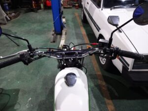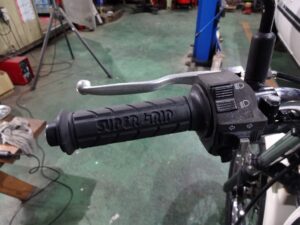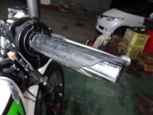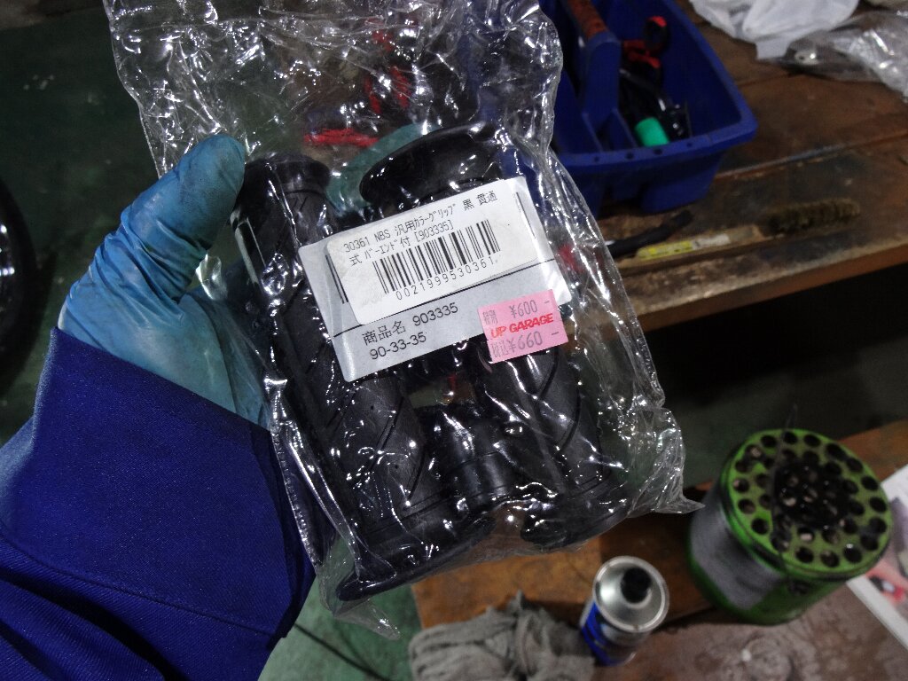 先日バイクを引き取ってから、タイヤを買いに行った帰りに寄った中古部品屋で子供が買ってたグリップです。