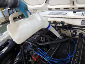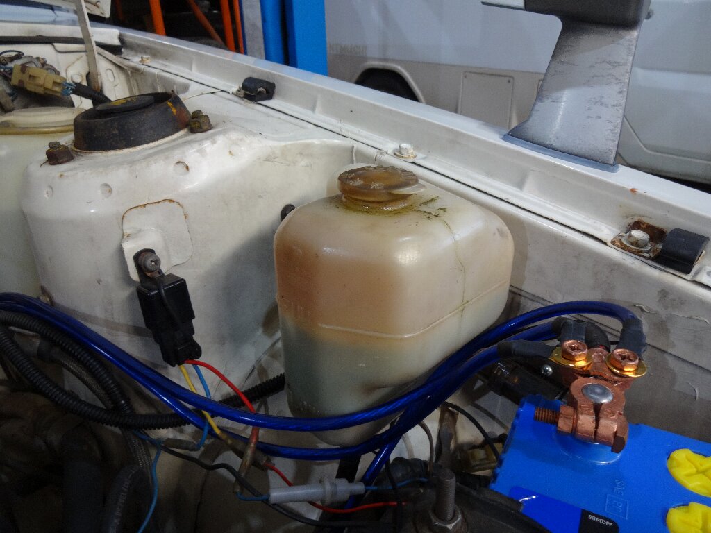 ボンネット開いて目についたのが冷却水の減りです。本来減るものでは無いのですが、、、