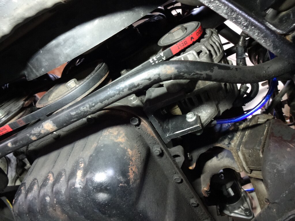 オルタネーターのベルトの緩みはありませんでした。アイドリング時の発電量が少ないので、出来ればプーリーをもう少し小径なのに交換したいところです。