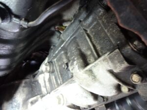 上の方、カムチェーンテンショナーかな?あとでリフトから下ろして上から見てみます。