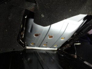 黒い遮熱板を外すと、シートレールをエンジンフードに留めてるナットが4箇所出て来ます。