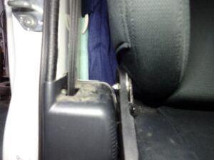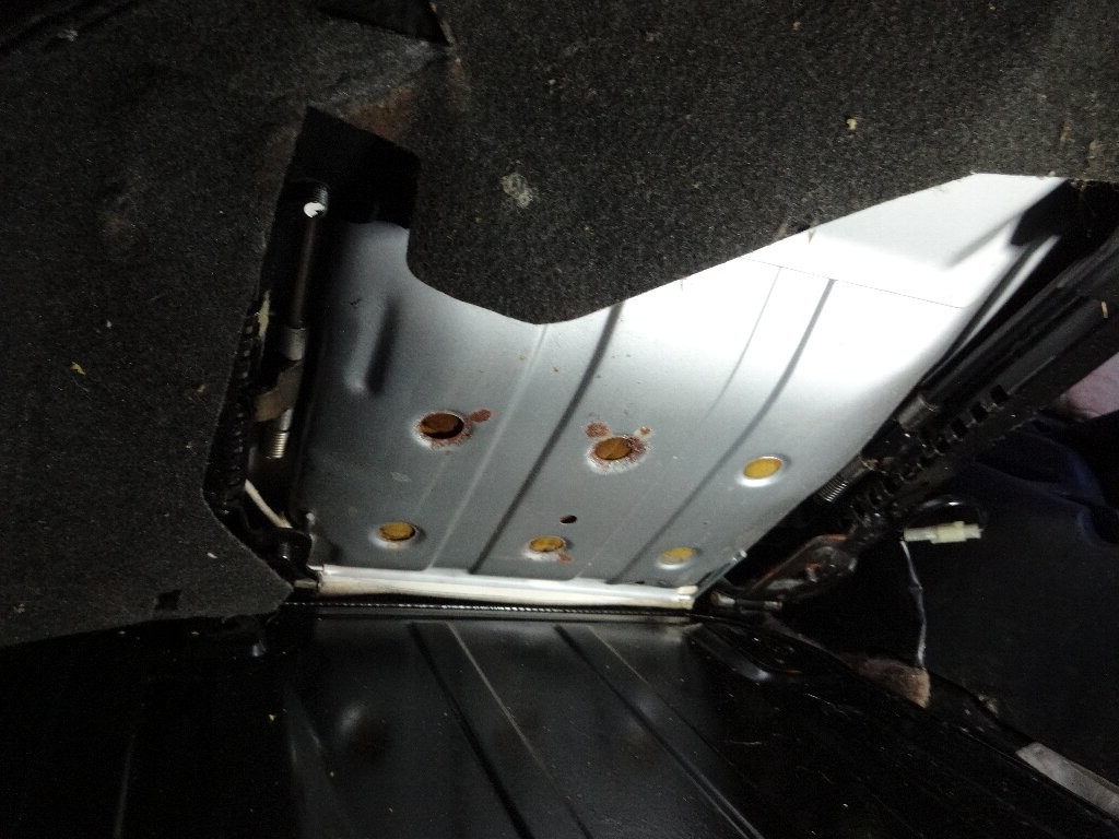 シートレール後端はヒンジを介して車体側にボルト2本で固定されてます。