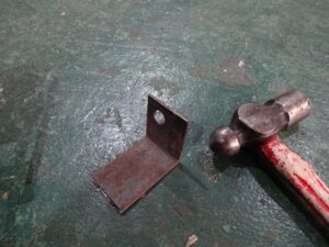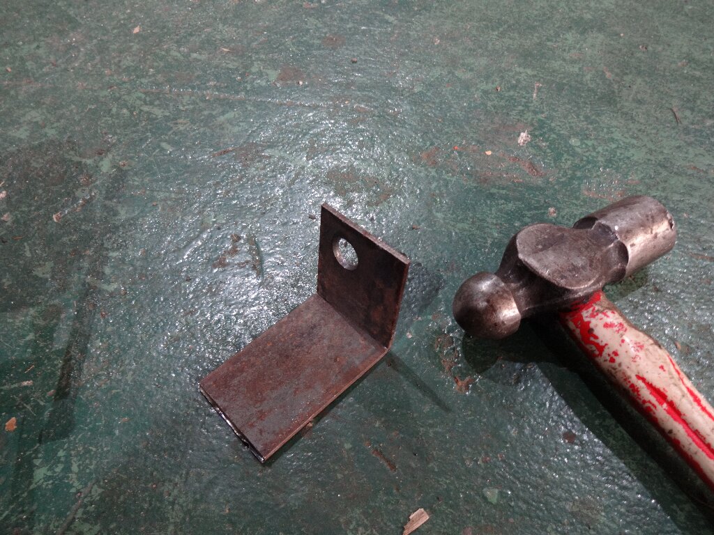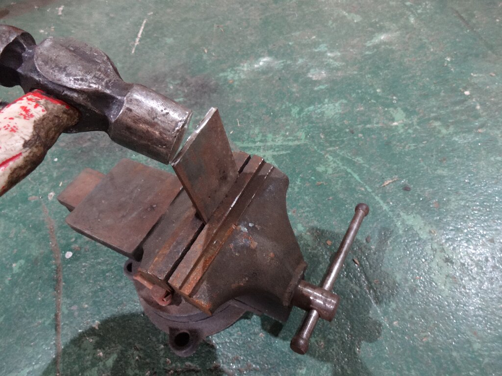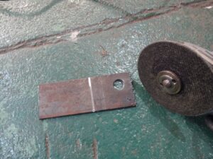 昨日は力技でフラットバー曲げましたが、今日はカット用の刃をサンダーに取り付けて、浅い溝を掘ってから、