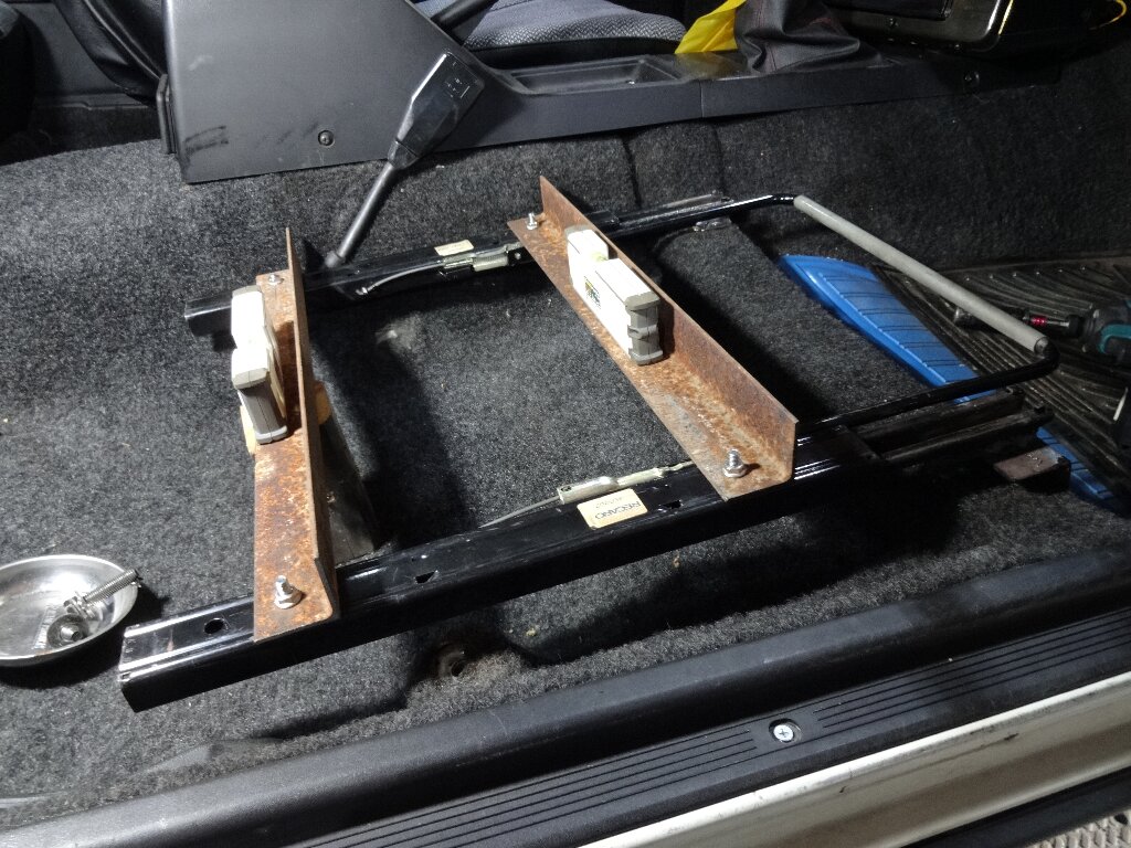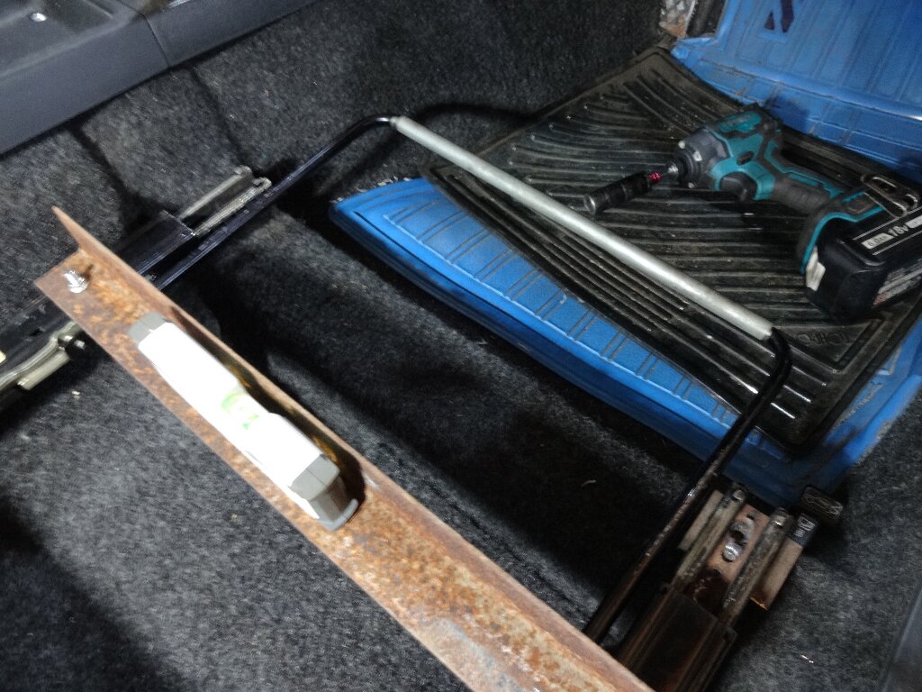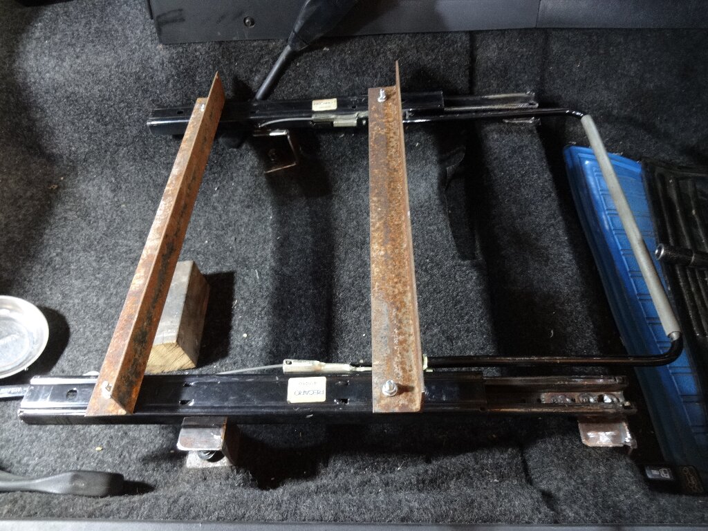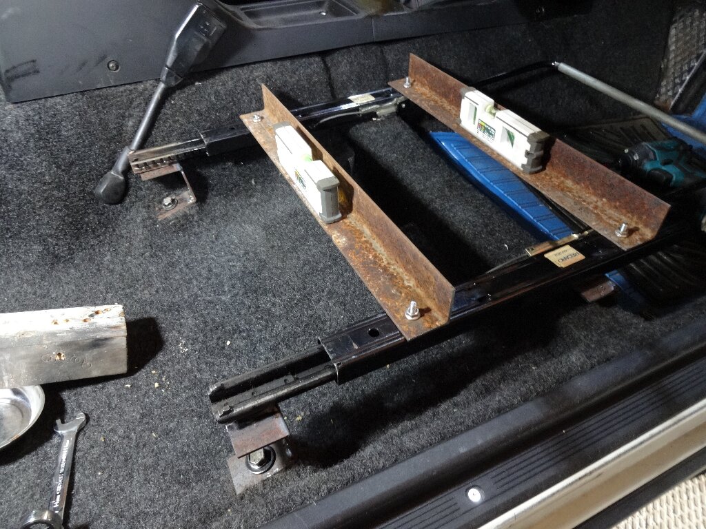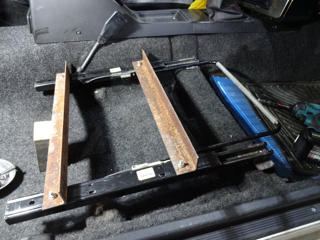 そして取り付けました。シートレールの見え具合が、ベースフレーム設置時と明らかに違って低くなりました。