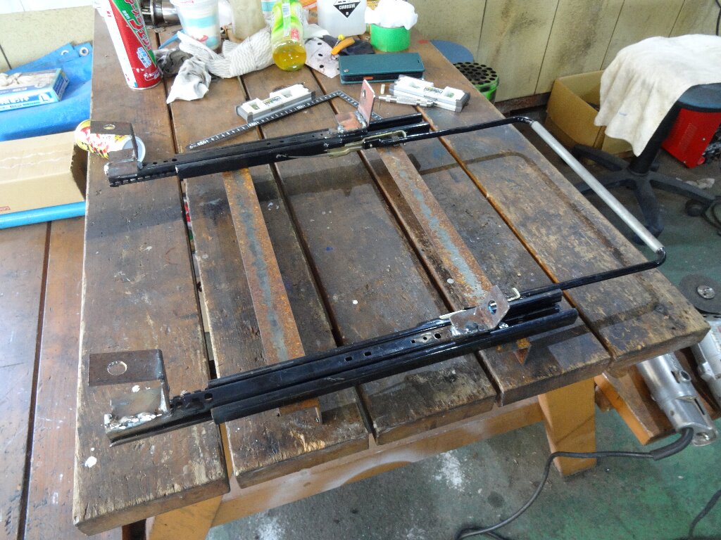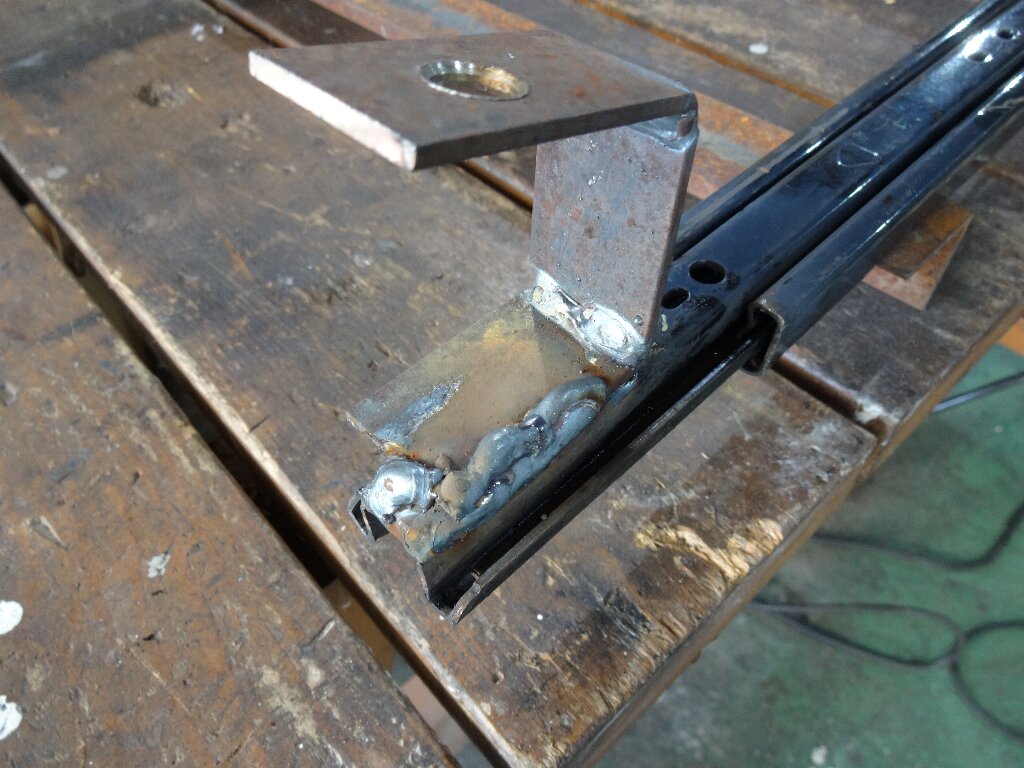 ガッツリ溶接したら、肉盛り部分がレールに干渉してスライド出来なくなったので、適宜サンダーで削っておきました。