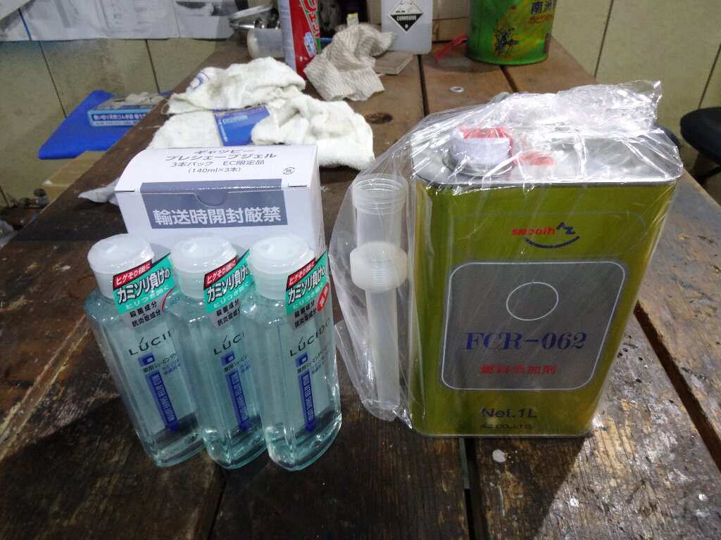 Amazonのブラックフライデーで購入した髭剃り用のジェルとローション、金色の缶は以前購入した添加剤をリピートしました。