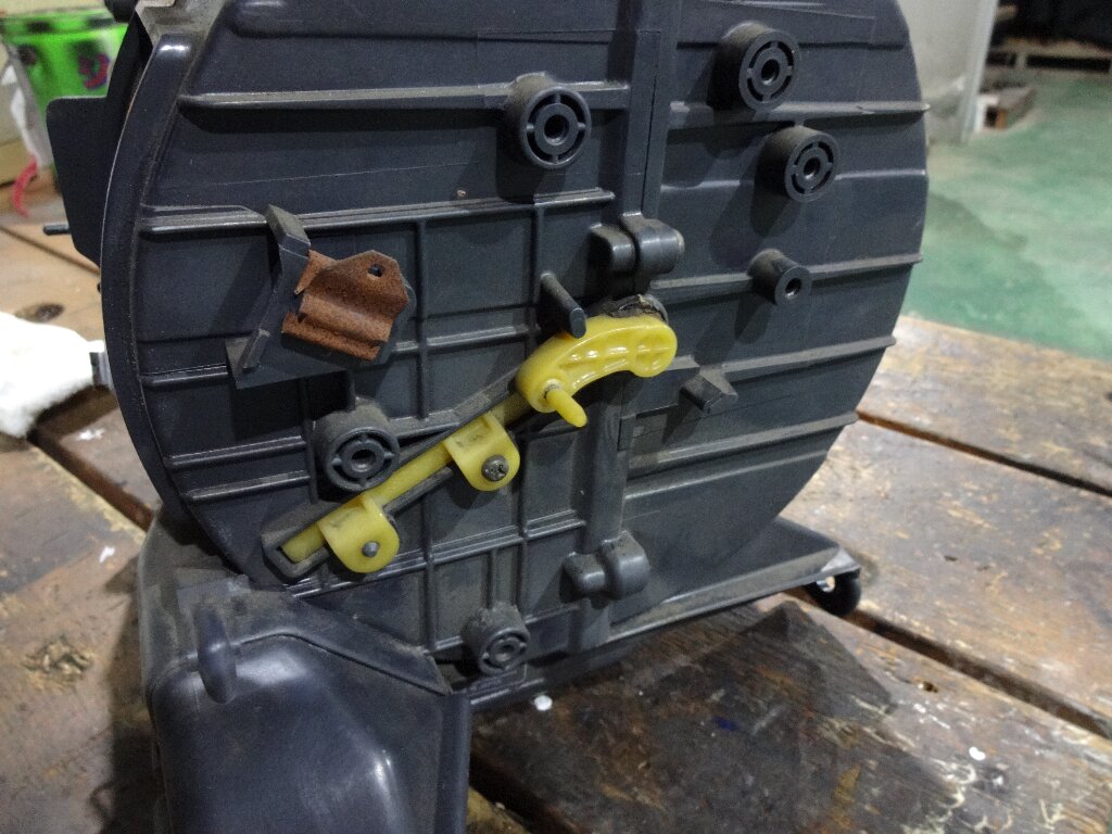 吹き出し口の切替はよく似た感じです。切替レバー先端のポッチが折れて無くなってるので、流用出来ればラッキーです。