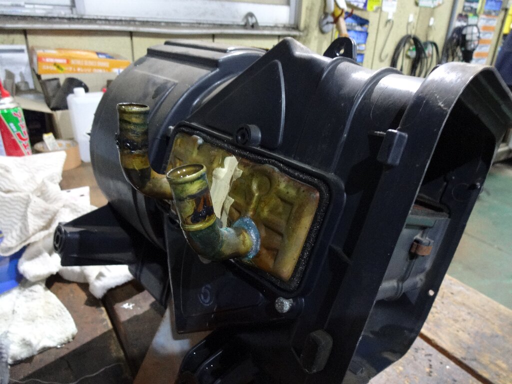 またヒーターケース内側にも・・・コイツもコアのパイプが破れてるのか???(汗)