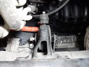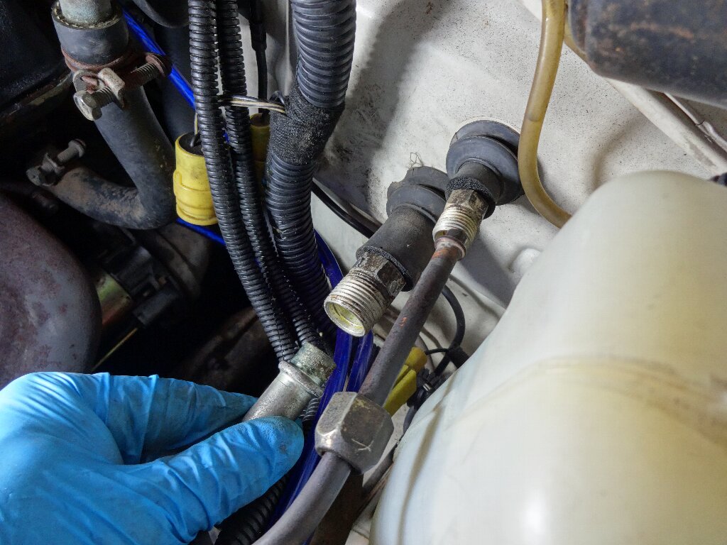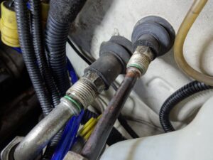 エンジンルーム側で高圧と低圧の配管を接続するのですが、