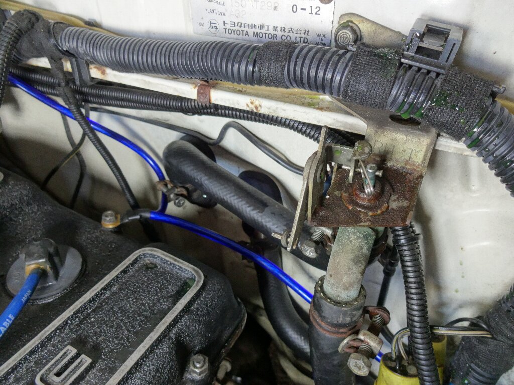 違ったのはこのワイヤーを保持する金具の位置です。空調切替のレバーやワイヤーは71のままなので、ヘタするとワイヤーが届かないとか有り得ますからね。