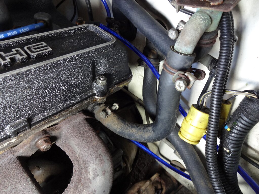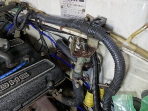 ヒーターバルブからのホースは以前と変わらないので問題無いのは当然として、エンジンに繋がるホースはヒーターコアのパイプの向きを変えたお陰で、少し位置は下になったものの違和感無く取り付け出来ました。