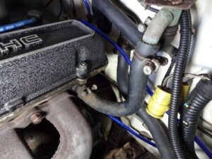 引き続きバイパスしてたヒーターホースをヒーターコアに接続し直します。