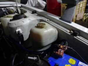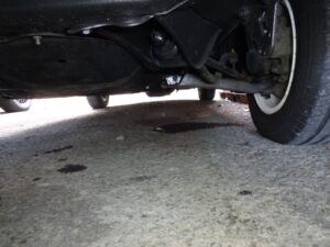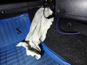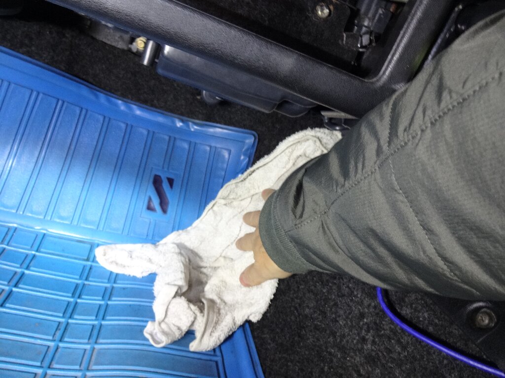 助手席足元を雑巾で拭うも濡れた箇所は無し。その他も漏れた形跡はありませんでした。