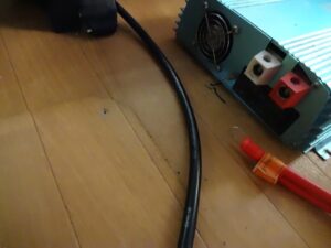 インバーターの方までケーブルを持って来るのですが、車体側面にバッテリーの切り替えスイッチを取り付けようと思ってたのに、壁面まで届くかどうか?ギリギリの長さでした。
