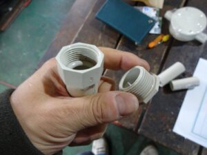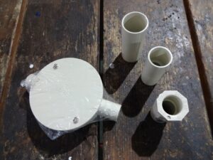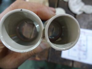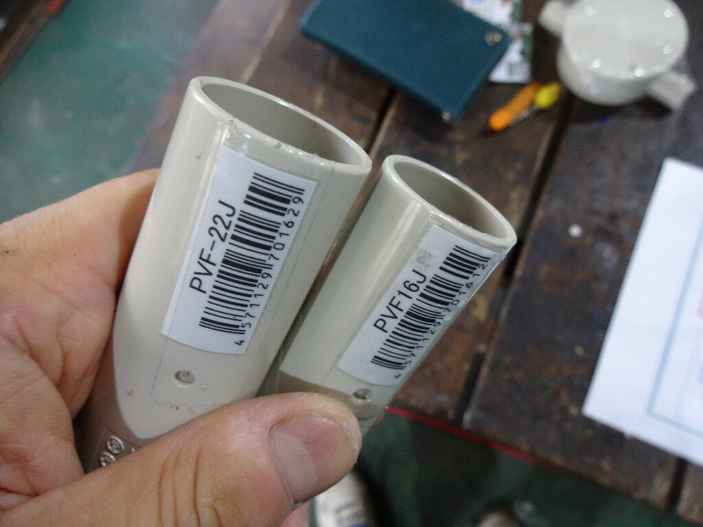 買った配管は正確にはジョイントパイプ2種ですが、そのまま取り付けるには引っ掛けるツバが無いので、16ミリの配管に22ミリの配管被せてツバ代わりに出来そうだと思って買って来ました。