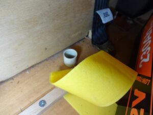 とりあえず今あけてる穴は25ミリなので、16ミリの配管の外径がちょうど嵌まるぐらいです。とはいえそもそもジョイントなのでチョット絞り過ぎかな?