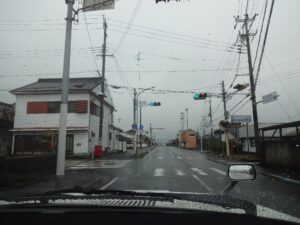 時折バケツを引っ繰り返した様な土砂降りになる中走ります。