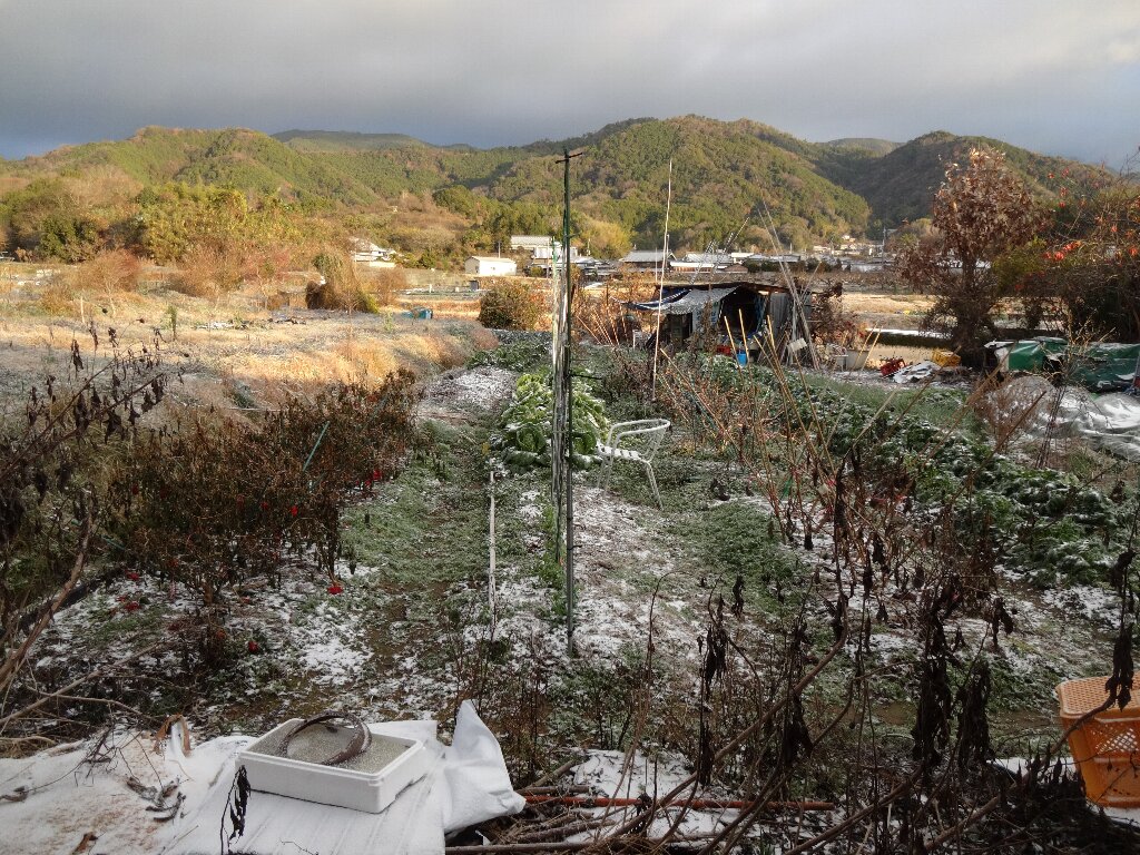 朝起きると一面真っ白とまでは行きませんが、思いのほか積もってました。