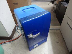 引き続き外作業は無理なので、冷温庫を事務所に持ち帰って分解します。