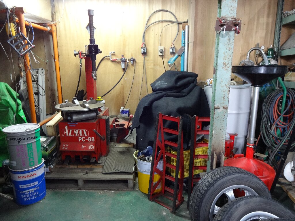 とりあえず邪魔になるので、廃棄予定のタイヤだけ外しておきます。