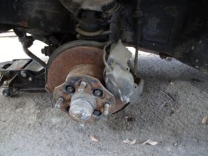フロントはディスクブレーキなんですよね。ちなみに固着防止にパッドは外してます。