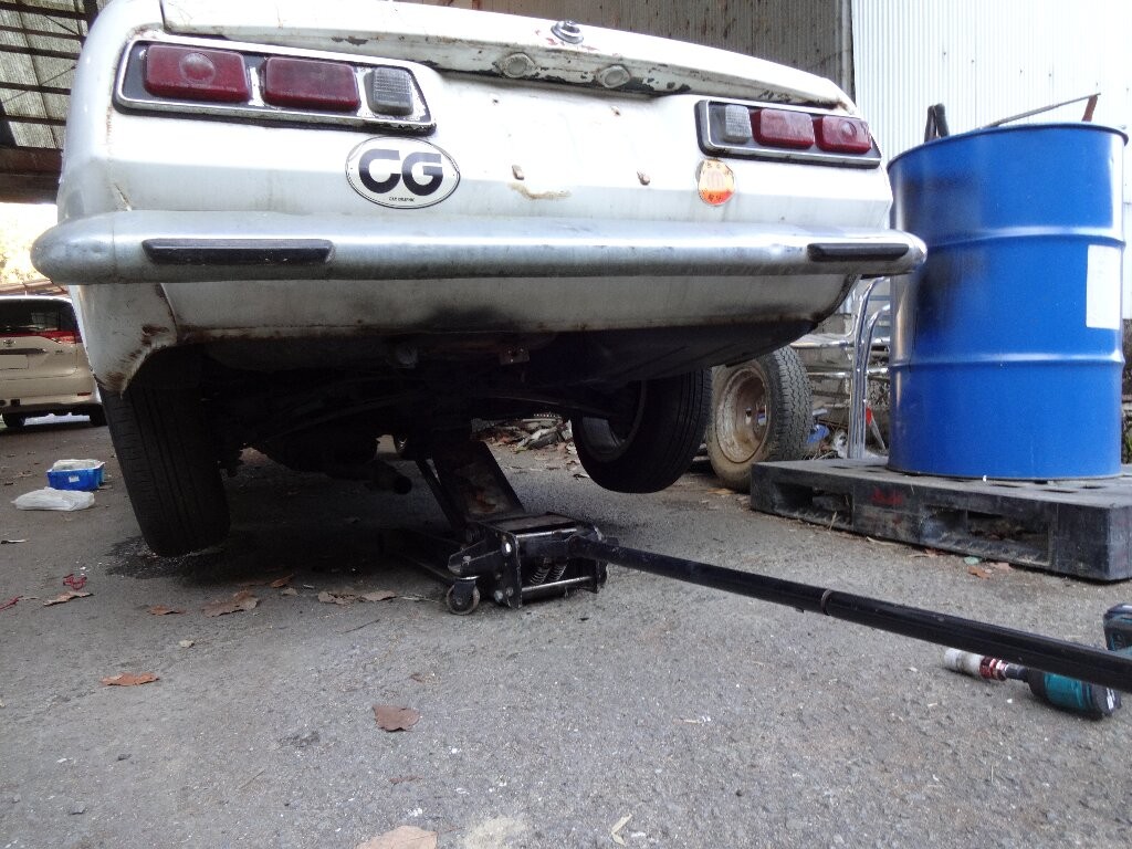 リアはホーシングで上げます。ブラ下がってるマフラーですがどうしよっかなぁ~、、、。