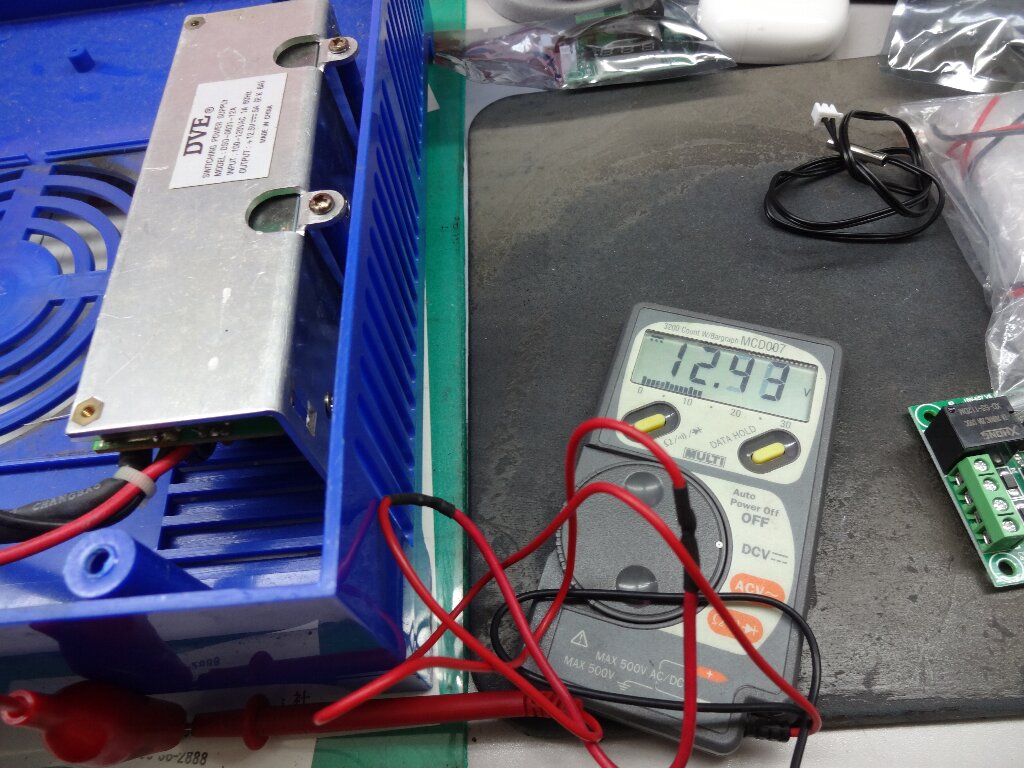まずはAC-DC電源が生きてるか?確認します。12V付近なので大丈夫みたいです。