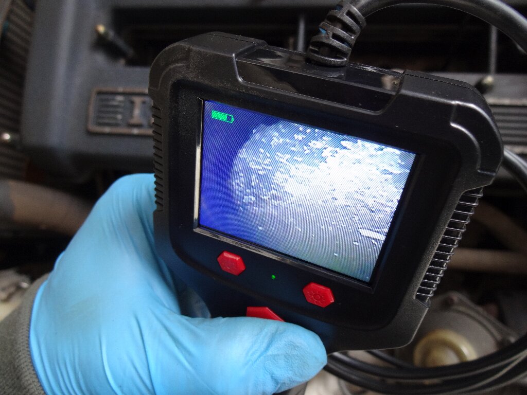 デジタルスコープで気筒内を確認すると、4番だけ錆が出てました。排気バルブが開いてたので、多分そこから湿気が入って錆びたのでしょう。