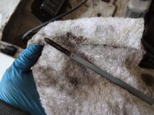 オイルレベルはアッパーの少し手前ぐらいでした。コレでエンジン掛ける訳では無いので、とりあえず潤滑程度はしてくれそうです。でも結構汚れてるから、先に替えといた方が良いかな?
