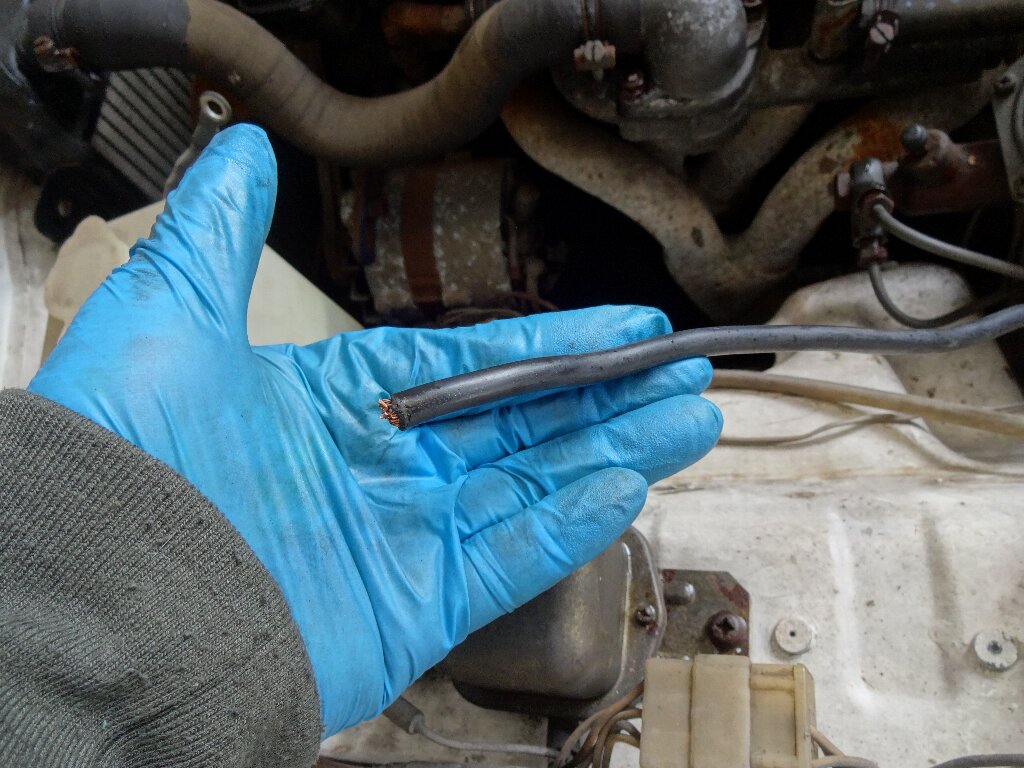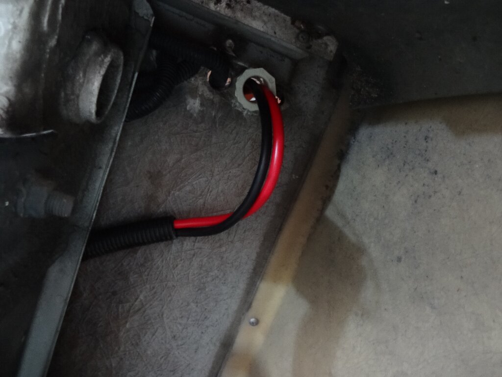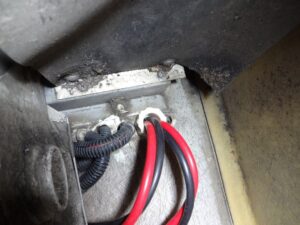 ちなみにコレがバッテリーのプラスへ接続する部分です。ファイヤーウォールから抜き取る際に端子が引っ掛かったので切り飛ばしてしまいました。