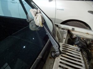んでワイパーアームが外れないので根元に潤滑剤吹いておきました。センターナットで留めるタイプでは無いので、スライディングハンマー使って外す必要があるのですが、引っ掛けるアタッチメント作らないとです。
