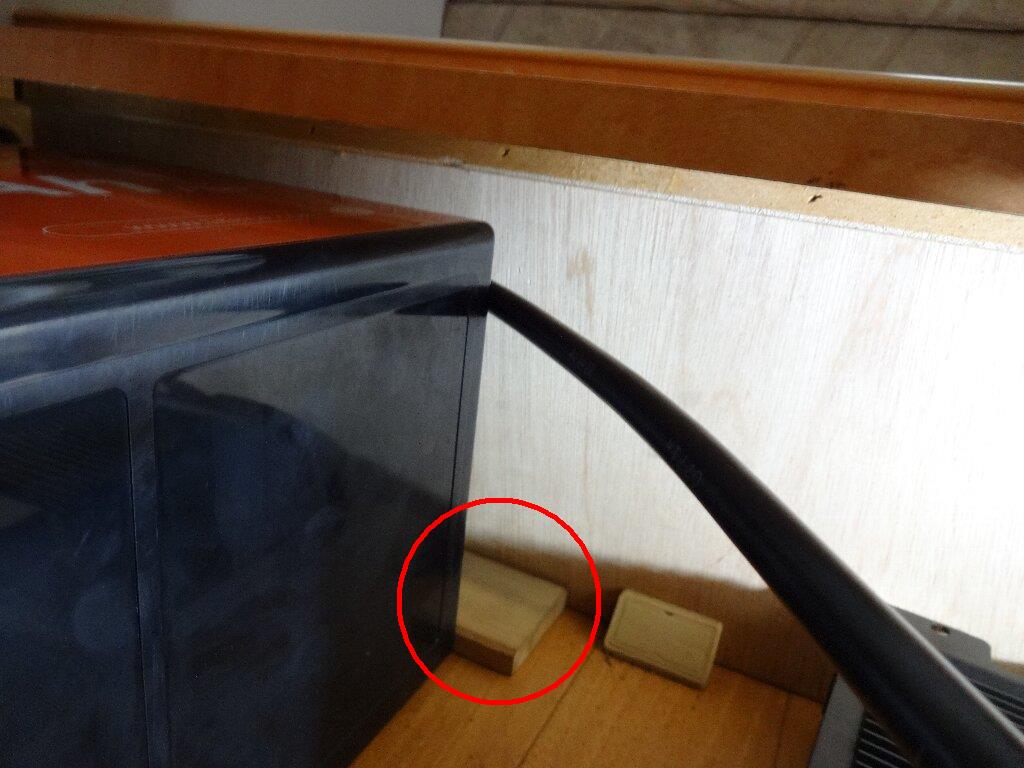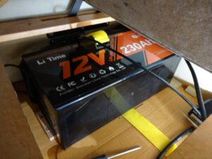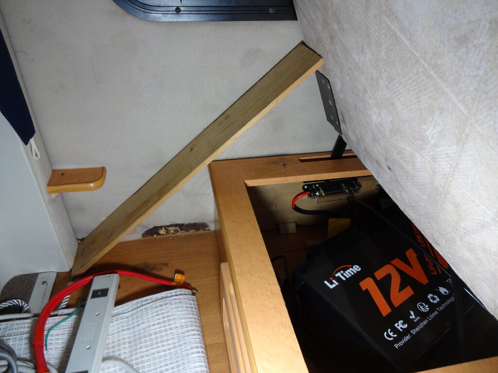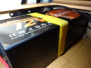 後方に挟んだ木片はビス留めして無いので、バッテリーを動かす際は、手を突っ込んで木片を取り除くと余裕が出来るので、狭いシート下でも取り回しし易くなりました。まさに一石二鳥です。