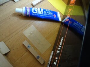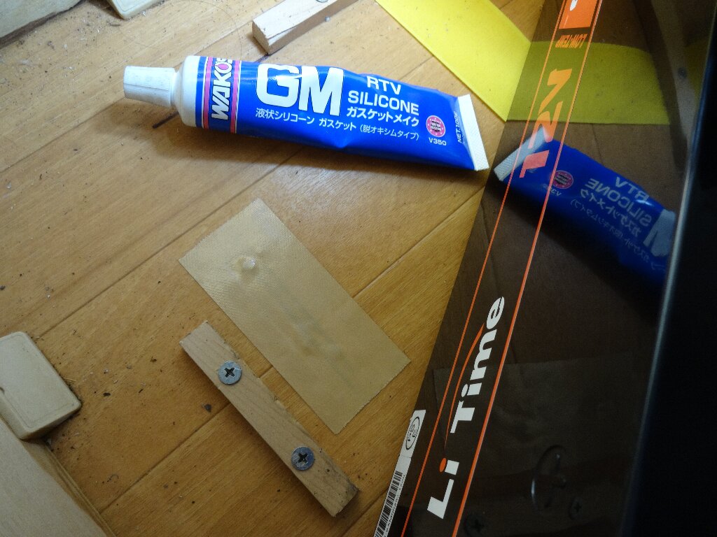 最初にストッパー留めるのにあけた穴は液体ガスケット注入してガムテープで塞ぎました。
